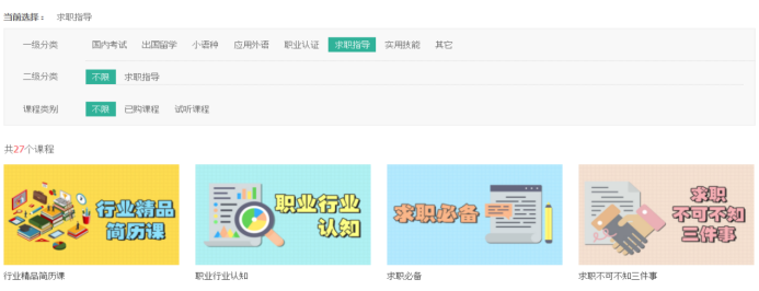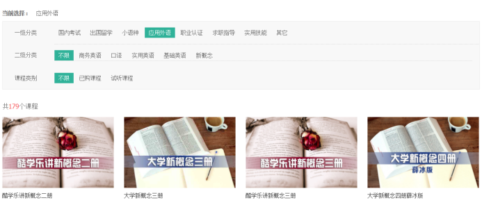 该平台涵盖国内考试、出国留学、小语种、应用外语、职业认证、求职指导、文献调研与信息素养等多类精品课程,欢迎大家随时进行在线学习。