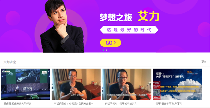 在“爱学励志”板块,你可以观看俞敏洪、王强、徐小平等一线名师的精彩演讲及讲座视频,你可以到感受奋发向上的学习精神,学习事半功倍的学习方法,可以收获开阔的视野和清晰的人生规划。