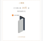 打卡满20天,系统随机抽取二等奖2名,奖品 小米充电宝一个