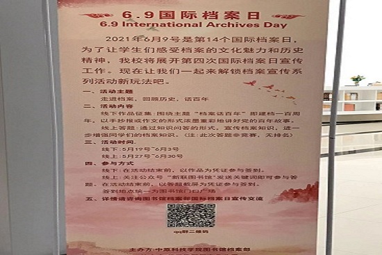 为庆祝第十四个国际档案日,宣传和普及档案知识,增强全校师生档案意识,让全校师生走近档案、认识档案,营造良好的档案工作氛围,自6月9日起至6月15日,我校图书馆档案部启动了第四届“6月9日国际档案日”宣传周活动,并在我校图书馆二楼大厅组织展开了形式多样的宣传活动。
