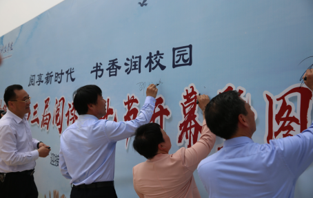在迎接第28个“世界读书日”来临之际,为深入贯彻落实习近平新时代中国特色社会主义思想,践行党的二十大精神,以高质量发展观着力提升全民阅读的内容和质量,我校图书馆在许昌校区图书馆东广场举办了中原科技学院第三届阅读文化节开幕暨图书捐赠仪式,大力倡导全校师生勤读书、爱读书,本届阅读文化节以“阅享新时代,书香润校园”为主题,旨在培养师生良好阅读习惯,共建浓郁书香校园。中国人民政治协商会议许昌市委员会副秘书长兼办公室主任王永波、许昌市委党史和地方史志研究室主任 郭汶青、中原科技学院书记邵书峰、常务副校长高新战、党委副书记、纪委书记、工会副主席左丽娟、副校长杨新新、副校长张东初等及许昌校区300余名师生参加开幕式及捐赠仪式,仪式由图书馆馆长茹佳佳主持。