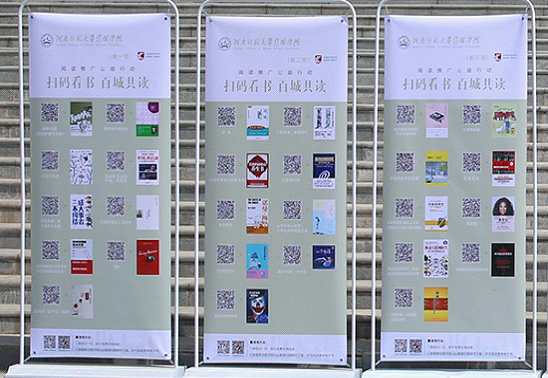 随着网络信息技术的迅速发展,人们阅读方式和习惯的不断变化,数字阅读已成为全民阅读中不可忽视的一部分。为进一步推广数字阅读的普及率,丰富广大读者的阅读方式,不断提高人们的阅读兴趣,河南师范大学新联学院图书馆于近日成功申请为中国图书馆学会“阅读推广公益行动”成员馆。因此,在第23个世界读书日之际,启动了“扫码看书,百城共读”活动。