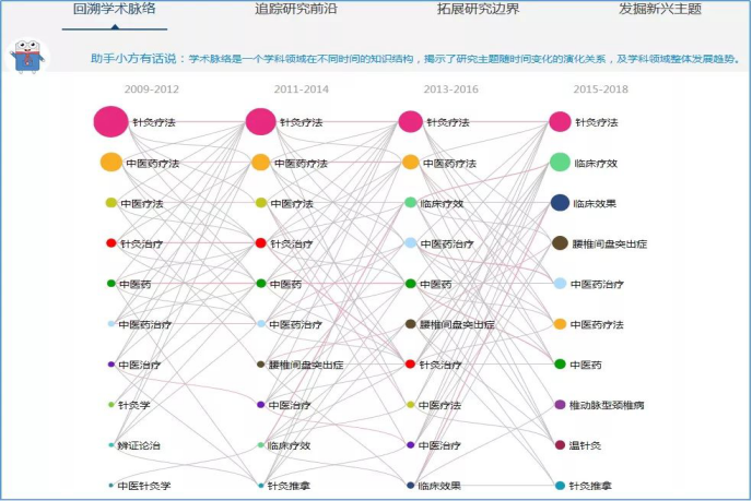 “回溯学术脉络”可以助你了解领域热点主题随时间的发展趋势: