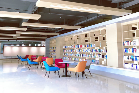 2020年8月29日,图书馆正式以崭新的面貌迎接全校师生的到来。近一年来我校图书馆改造工程经过前期多次的论证、规划,再到搬迁、拆卸、改造、装修、保洁等一系列的工作,终于和全校师生见面了。图书馆的出入检测门、中厅新书推荐区、中原科技学院应用技术大厅、名师讲堂123、综合服务台、阅览区、休闲阅读区、水吧等每一处都给读者带来了美的感受。