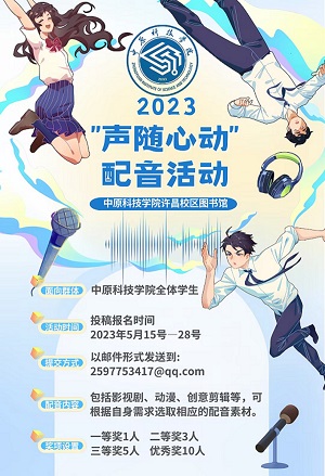 进一步丰富校园文化生活,努力营造积极向上,健康文明的校园文化氛围,展现我校学生朝气蓬勃、健康向上的精神风貌,图书馆特此举办“声随心动”配音比赛。经过邮箱投稿、初步筛选、指导老师评分等环节后,活动已顺利结束。现将比赛结果公布如下: